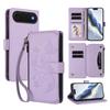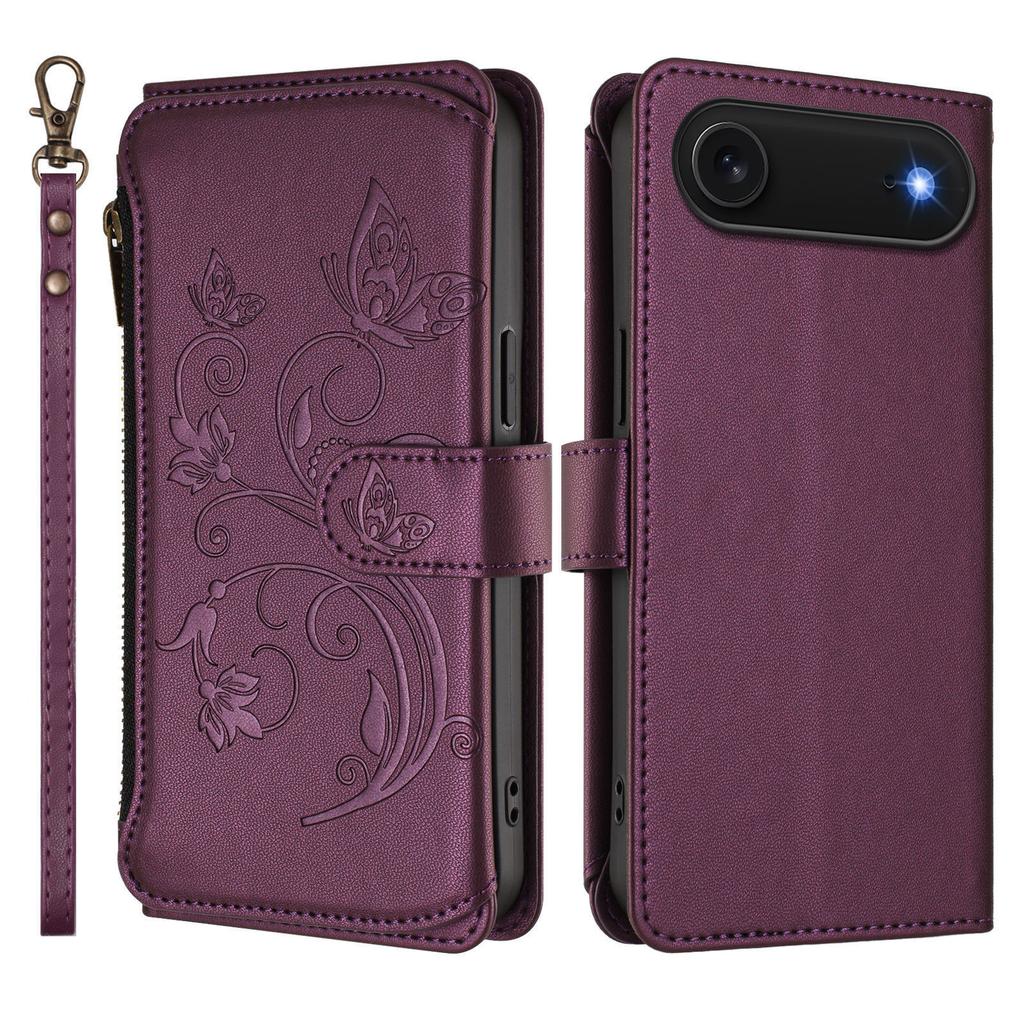 For iPhone 17 Air Leather Case Butterfly Floral Imprint Zipper Wallet Stand Cover with Wrist Strap