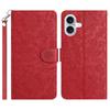 For iPhone 17 Case Flower Imprint Leather Flip Wallet Phone Cover with Wrist Strap