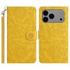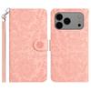 For iPhone 17 Pro Case Flower Imprint Leather Flip Wallet Phone Cover with Wrist Strap