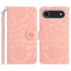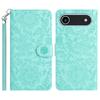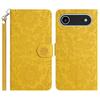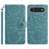 For iPhone 17 Air Case Flower Imprint Leather Flip Wallet Phone Cover with Wrist Strap