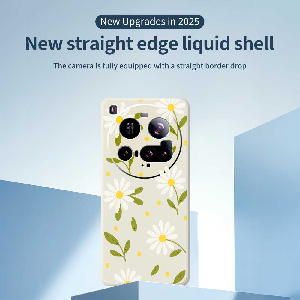 For Xiaomi 15 Ultra Case White Flowers Green Leaves Pattern Printing Straight Edge TPU Phone Back Cover
