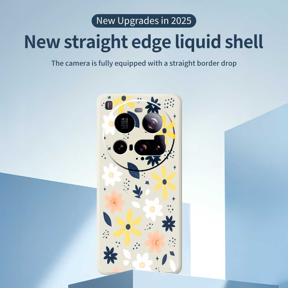 For Xiaomi 15 Ultra Case Colorful Floral Blue Leaves Pattern Printing Straight Edge TPU Phone Back Cover