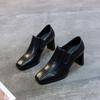 Women's Fashion Chunky Heel Slip-On Square Toe High Heels - British Style Leather Shoes for Autumn/Winter 2025