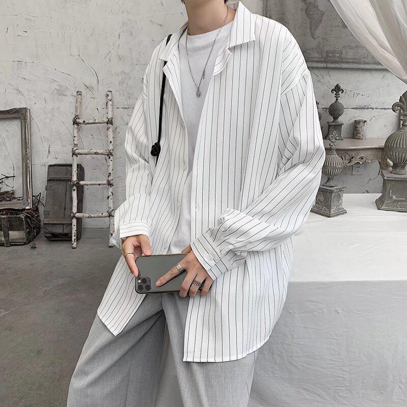 Men's 2024 Summer Striped Long-Sleeve Trendy Loose Casual Shirt-Jacket