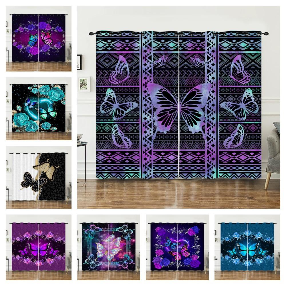 Curtains Butterfly Flower Curtains Digital Printing Blackout Curtains No Punching