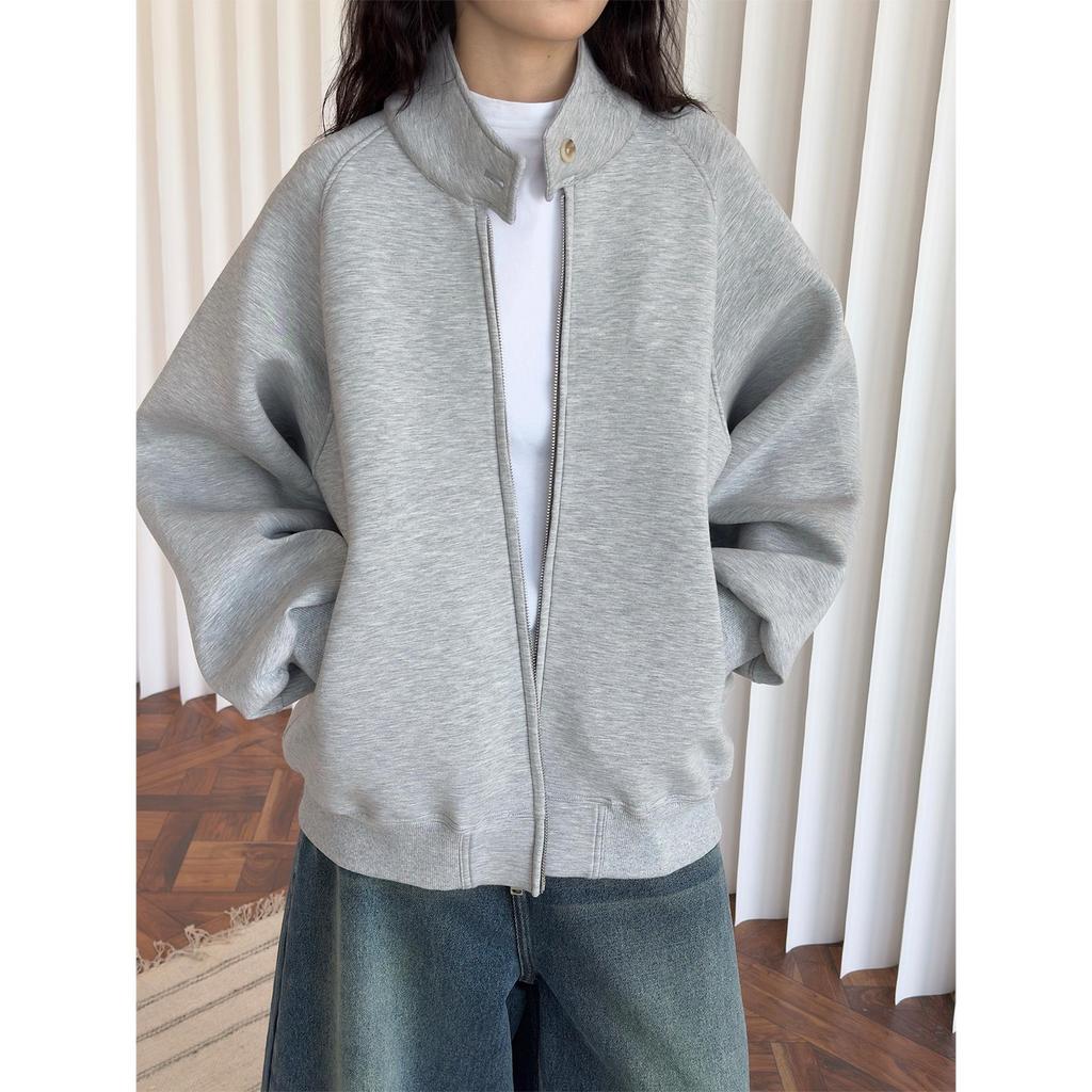 Louvre Spring Retro Stand Collar Zip Sweatshirt - Soft Loose Jacket for Women