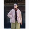 Winter Women's Vintage Linen Parkas Stand Long Sleeve Button Plus Cotton Warm Coat Solid Color Chinese Style Parkas