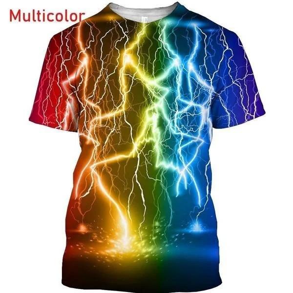 Summer Round Neck 3D Personalized Lightning Print Top Fashionable Casual Short Sleeved Men's T-shirts