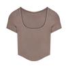 Elevate your summer wardrobe with this chic and stylish high waist ribbed T-shirt, designed to enhance your silhouette. Crafted from soft and durable polyester, this slimming women's top features a unique asymmetric cut that adds a modern twist to the classic T-shirt design. The solid pattern and flattering U-neck neckline contribute to its versatile appeal, making it ideal for pairing with anything from jeans to skirts. With its comfortable short sleeves, this T-shirt is perfect for warm-weather outings and casual gatherings.