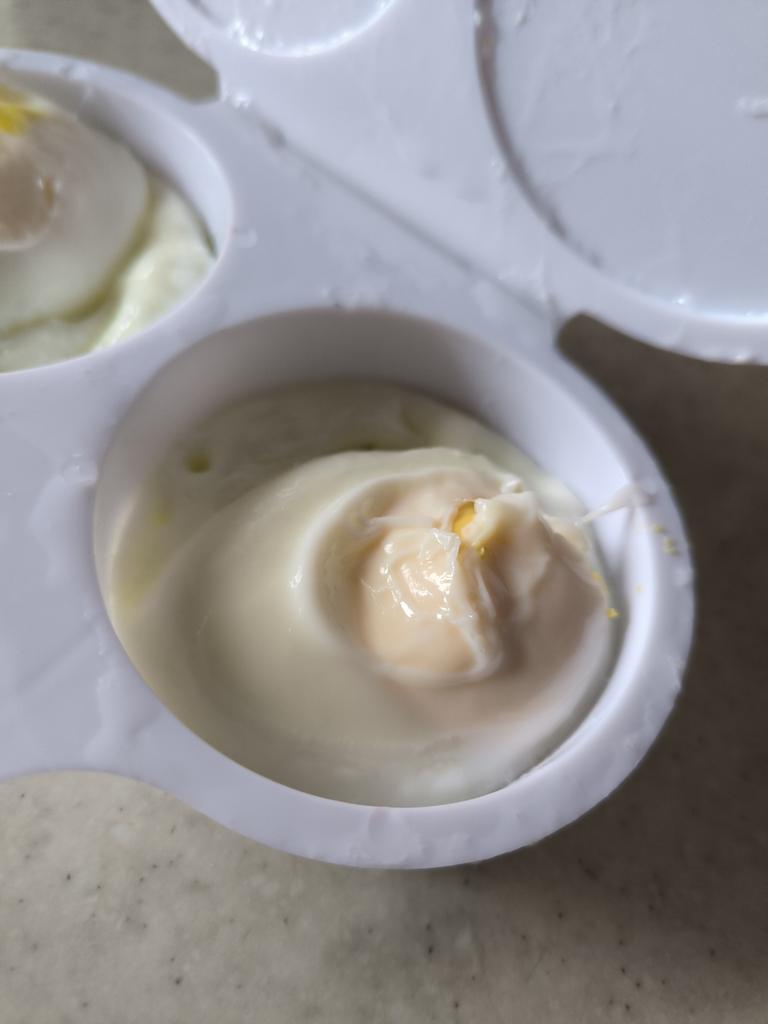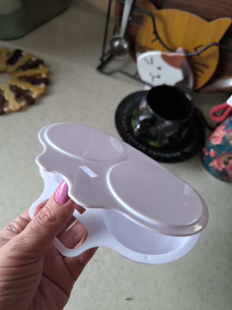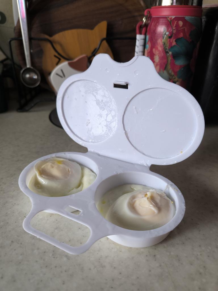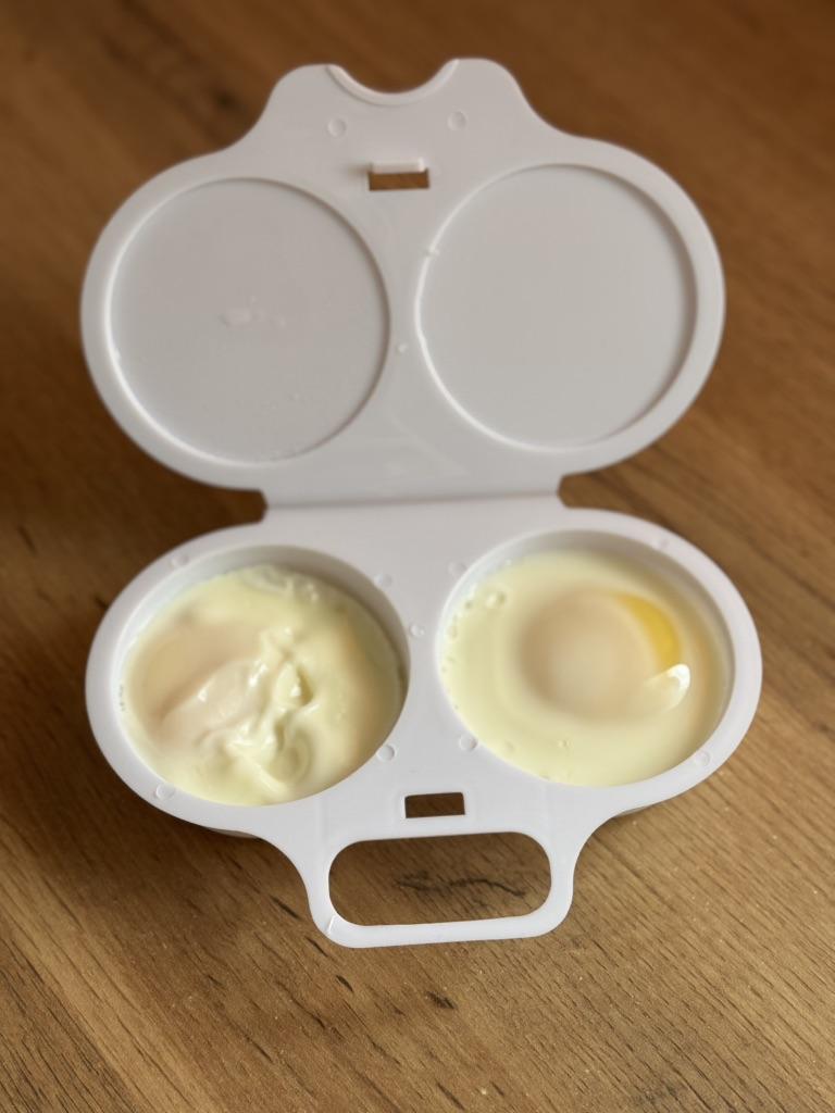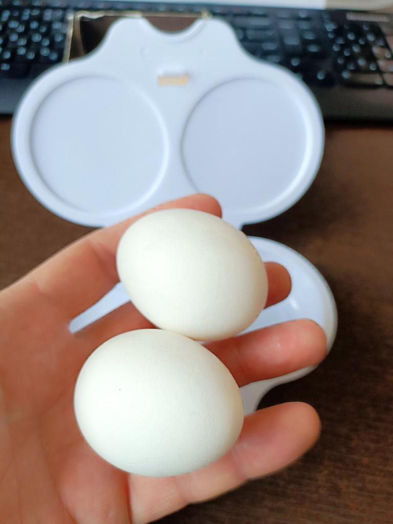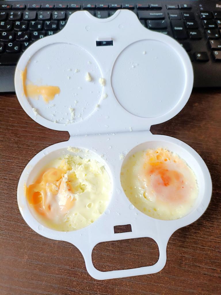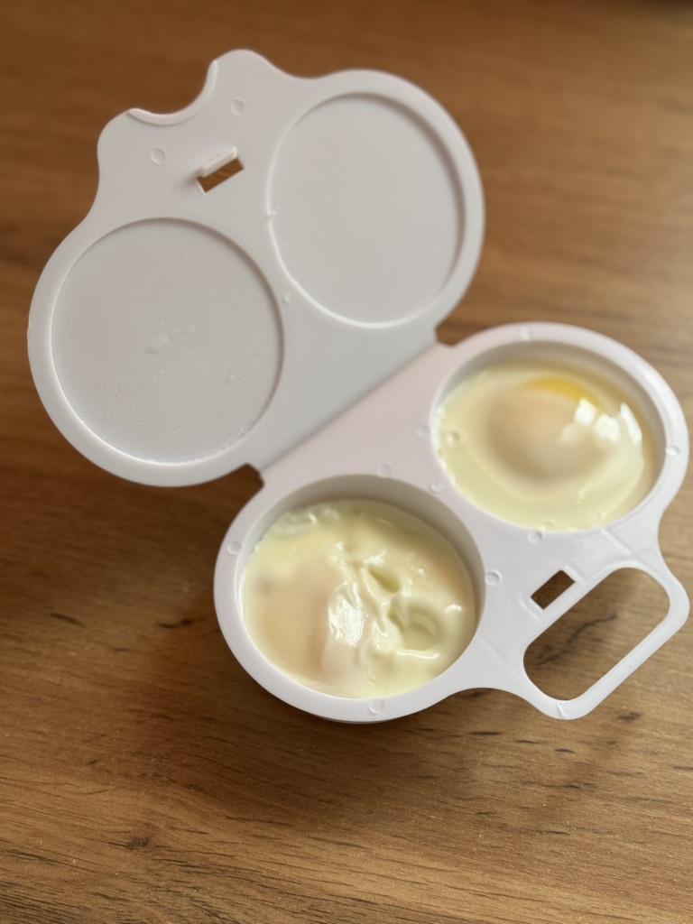 EGG COOKER fantastic microwave egg cooker. A drizzle of extra virgin olive oil, a pinch of salt and in one minute at 800 watts they are ready! Arrived in Italy with tracked shipping in 20 days. Careful packaging. Material: plastic. Snap closure . No defects found. Absolutely recommended purchase 👌