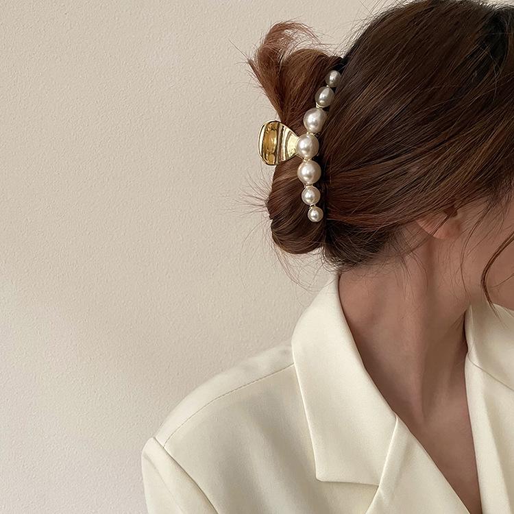 Korean Retro French Pearl Claw Hair Clip - Elegant Metal Hair Accessory for Women