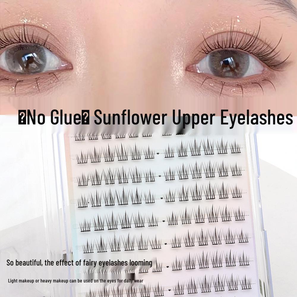 Lazy Sunflower Self-Adhesive False Eyelashes - Glue-Free, Natural Look, Easy 3-Step Application, No Removal Needed