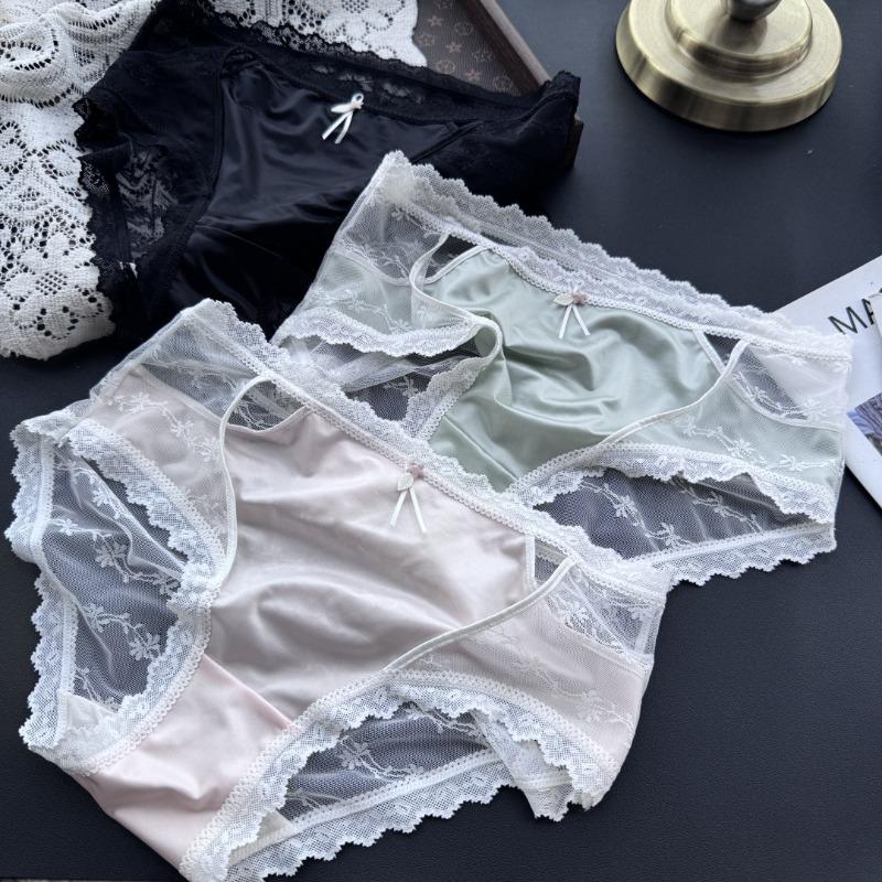 Ladies Spring Summer Cute Ice Silk Lace Mesh Low Waist Sexy Panties