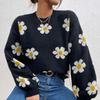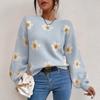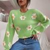 Autumn Winter New College Style Flower Knitted Coat Loose Fashion Round Neck Pullover Print Long Sleeve Sweater Women's Tops