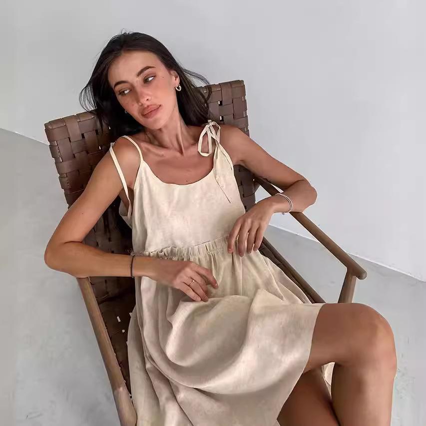 2025 Summer Cotton Linen Suspender Dress: Sexy, Loose, One-Piece for Europe & America
