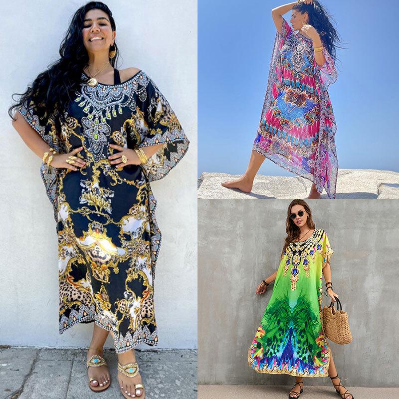 Indigo Floral Beach Robe: Loose Seaside Holiday Sunscreen Dress & Bikini Cover-up