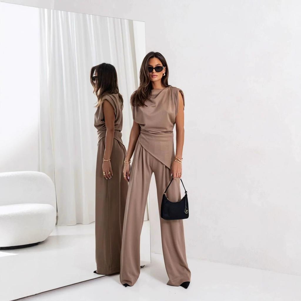 Summer New Women's Fashion Solid Color Irregular Short-sleeved Set