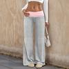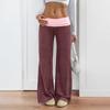 YYFS Women's Fashion Casual Solid Color Print High Waist Trousers Pants & Capris