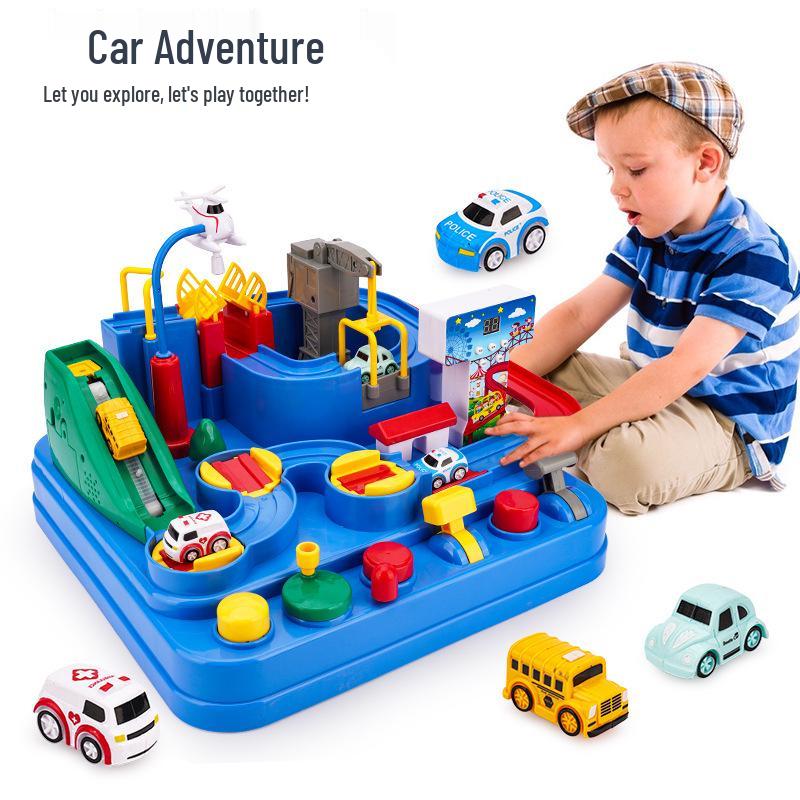 Adventure Boy's Cross-Border Car Challenge: Educational Track & Train Parking Lot Toy