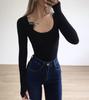 In Stock: Sexy Skin-Friendly Nude Cotton U-Neck Long Sleeve Bodysuit - Slimming Fit