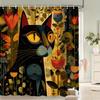 Artistic Black Cat Floral Waterproof Mildew-Resistant Shower Curtain - Unique Design for a Stylish Bathroom Décor Experience