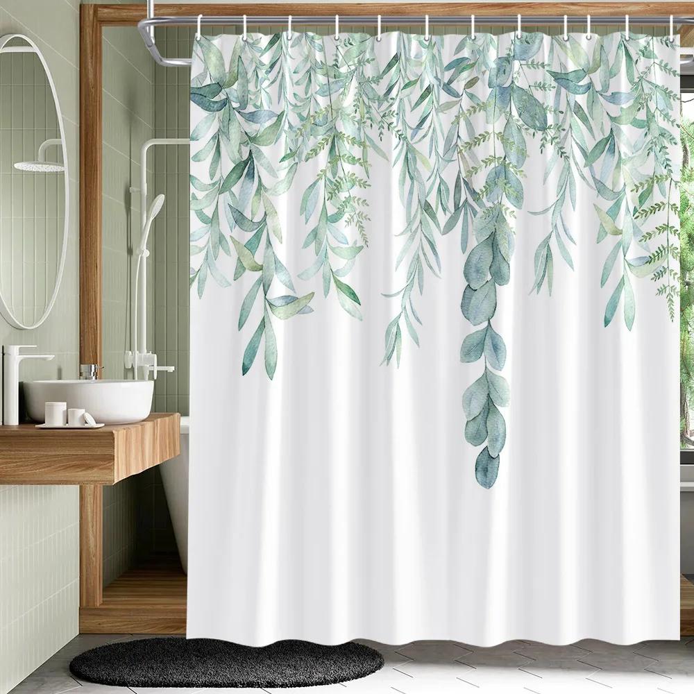 Plant Leaves Flower Shower Curtains Set Garden Floral Drum Tower Fabric Bathroom Decor Splash Resistant Partition Bath Curtains