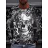 Autumn Round Neck 3D Skull Pattern Printed Top Fashionable Casual Long Sleeved Men's T-shirts