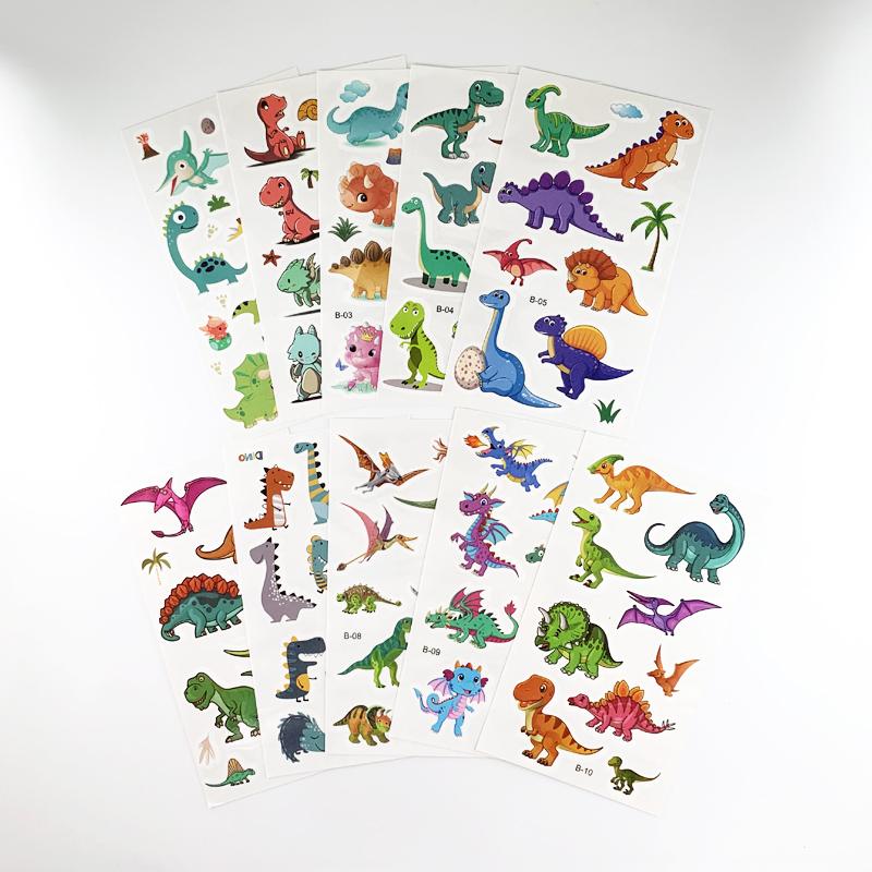 10 Sheets/Set Cartoon Dinosaur Fake Tattoo Stickers Kids Arm Body Temporary Tattoos for Children's Gift