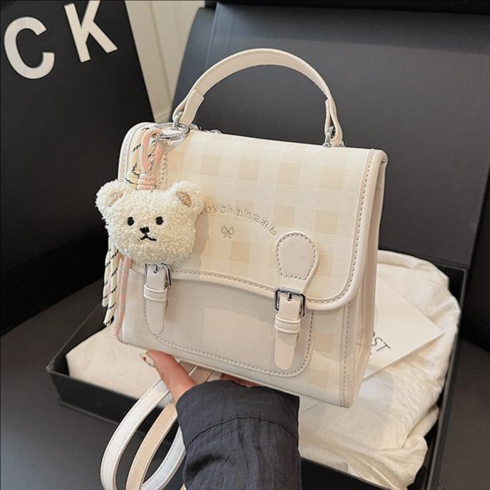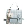 Checkered PU Bag with Bear Charm: Crafted from PU, featuring a cute checkered pattern and an adorable bear charm. Supports hand - carry, single - shoulder, double - shoulder (backpack), or cross - body wear. Ideal for adding a sweet, playful touch to daily outings, school, or casual gatherings.
