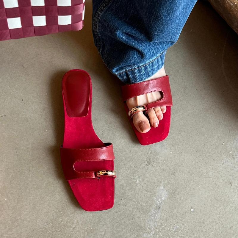 Sheepskin Version~ New Design Open-toe Flats Women's Metal Buckle Toe Slippers Temperament Sandals