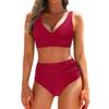 Fashionable High-Waist Bikini Swimsuit Separate Colors Printed Cross Design Women's Swimwear Elegant Chic Poolside Outfit