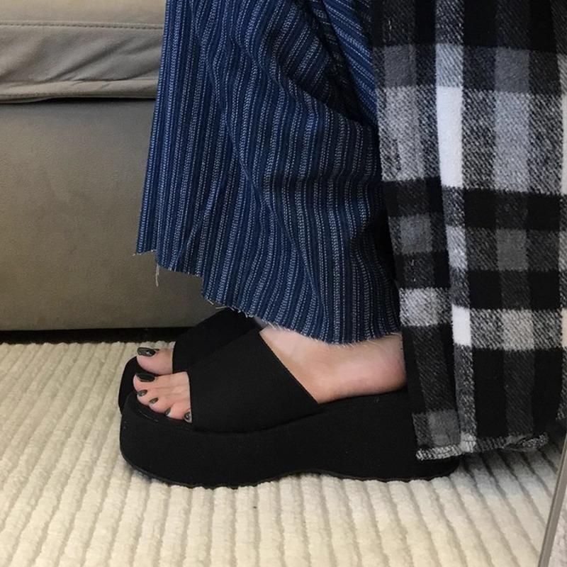 Blogger Recommends! Slippers Women Wear Seaside Beach Square Open-toed Slope Heel Thick Bottom In Summer