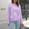 Women's Floral O-Neck Sweater Loose Long Sleeve Knit Sweater