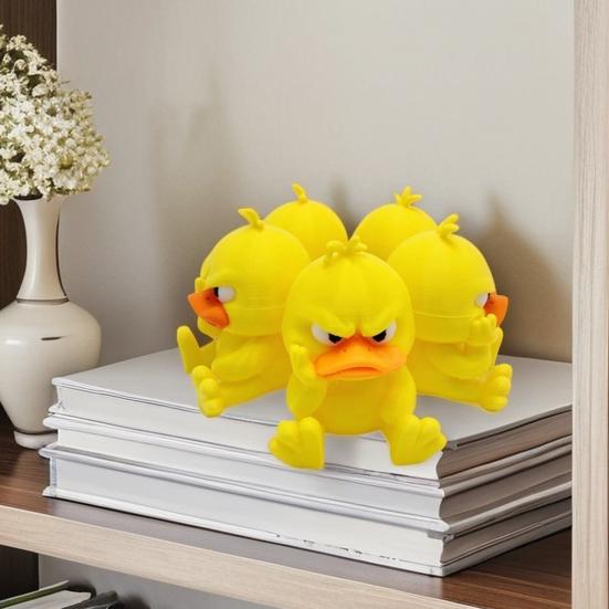 Cartoon Angry Duck Figurine 3D Printed Frowning Sitting Duck Statue Sculpture Little Blue Yellow Duck Ornament Decoration