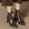 Autumn and Winter Thick Heel Single Boots Medium Tube Thin Boots Women Thin Rear Zipper Black Pointed Head Low Tube Leather Boots High Heel Women
