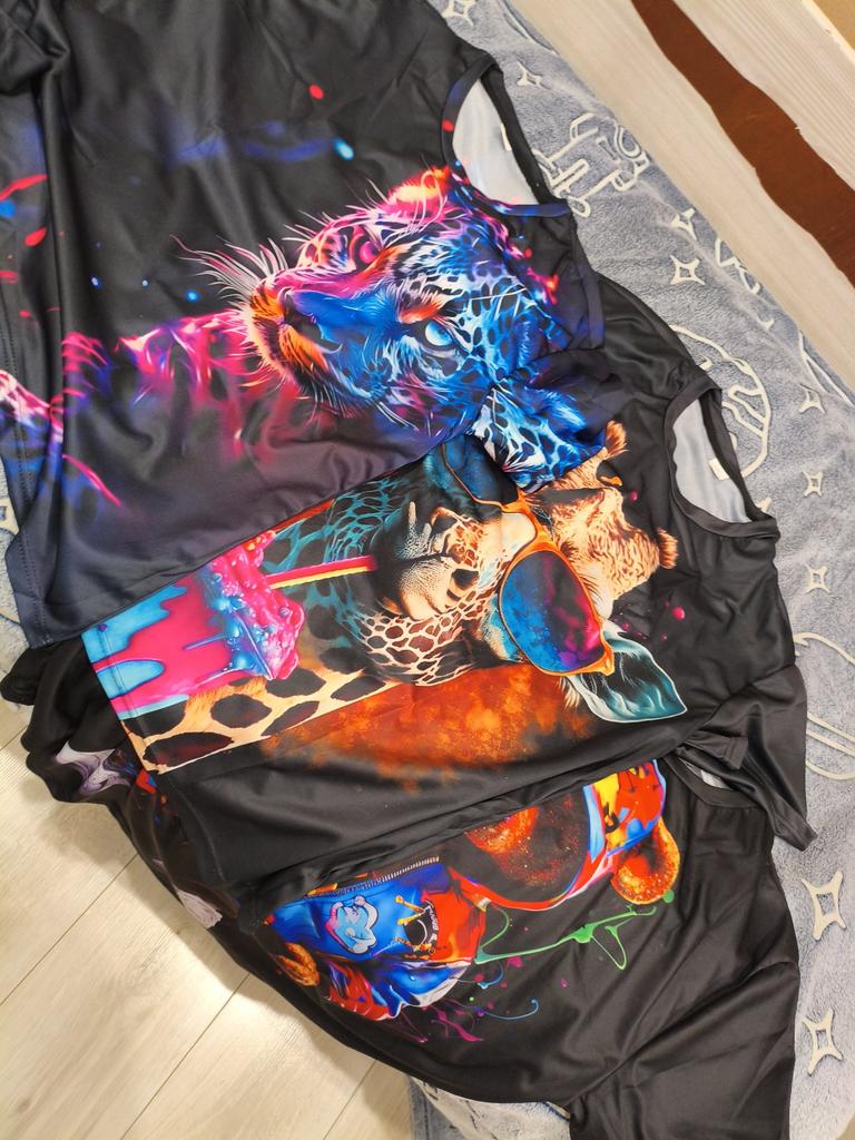 Summer Round Neck 3D Giraffe Graphic Print Top Fashionable Casual Short Sleeved Men's T-shirts