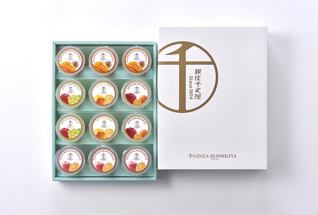 [Mango & Passion Fruit] Mango in syrup (made in Thailand), sugar, mixed isomerized corn syrup, mango puree, concentrated passion fruit juice, concentrated orange juice, spirit/pH adjuster, gelling agent (thickening polysaccharide), stabilizer (modified starch), antioxidant (V.C), flavoring, coloring (carotenoid), (contains orange and soy). [Peach & Grapefruit] Grapefruit juice (grapefruit). Roots (Made in Mexico, Israel)), sugar, white peach in syrup, peach puree, sugar mixed glucose-fructose corn syrup, concentrated peach juice, starch syrup, alcohol/gelling agent (thickening polysaccharide), pH adjuster, antioxidant (V.C), flavoring, acidulant, coloring (carotenoid), (contains some peaches) [Apple & Orange] apple in syrup (made in Japan), sugar, high-fructose corn syrup, apple juice, concentrated apple juice, concentrated mixed fruit juice (Satsuma mandarin, Orange), concentrated orange juice, liquor/gelling agent (thickening polysaccharide), antioxidant (V.C), pH adjuster, flavoring, acidulant, coloring (carotenoid), (contains orange and apple) [Apple & Muscat] Apple in syrup (made in Japan), sugar, reduced starch syrup, mixed isomerized starch syrup, concentrated apple juice, apple puree, concentrated muscat juice/gelling agent (thickening polysaccharide), pH adjuster, stabilizer (pectin), antioxidant Vitamin C, acidulant, flavoring, coloring (gardenia, carotenoid), (contains apple) [Citrus Mix] Grapefruit in syrup (made in Turkey), sugar, sweet summer mandarin orange in syrup, liquor, concentrated lemon juice / gelling agent (thickening polysaccharide), pH adjuster, antioxidant (Vitamin C), flavoring. This combination of juicy jelly pulp and a beautifully colored two-layer jelly tightly seals in the deliciousness of fruit.