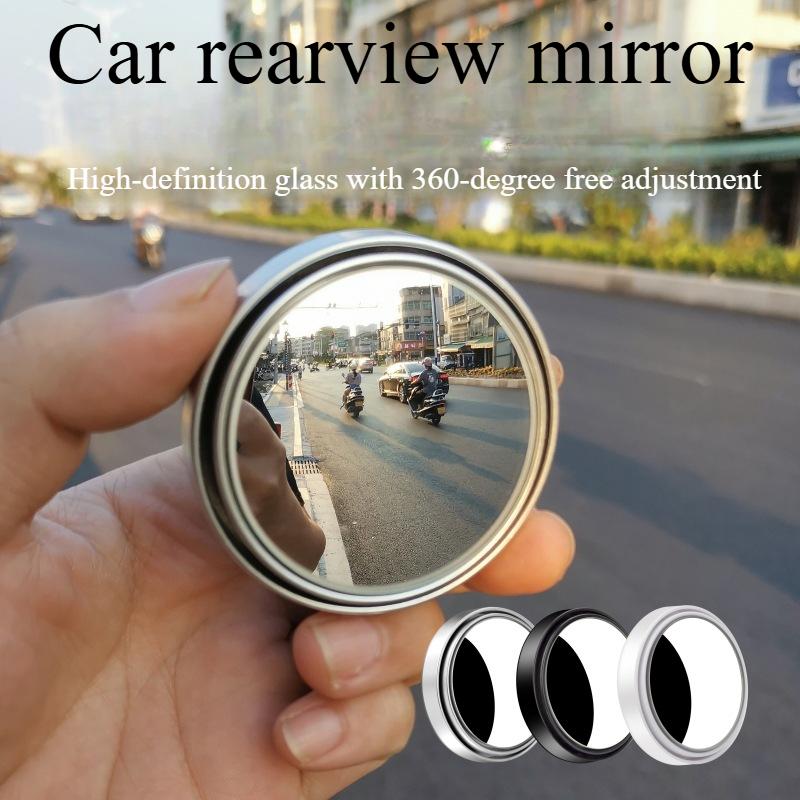 1PAIR Car Reversing Rearview Mirror Paste Type Car Small Round Mirror 360 Degree Adjustable Large Field of View Auxiliary Wide-angle Blind Spot Mirror