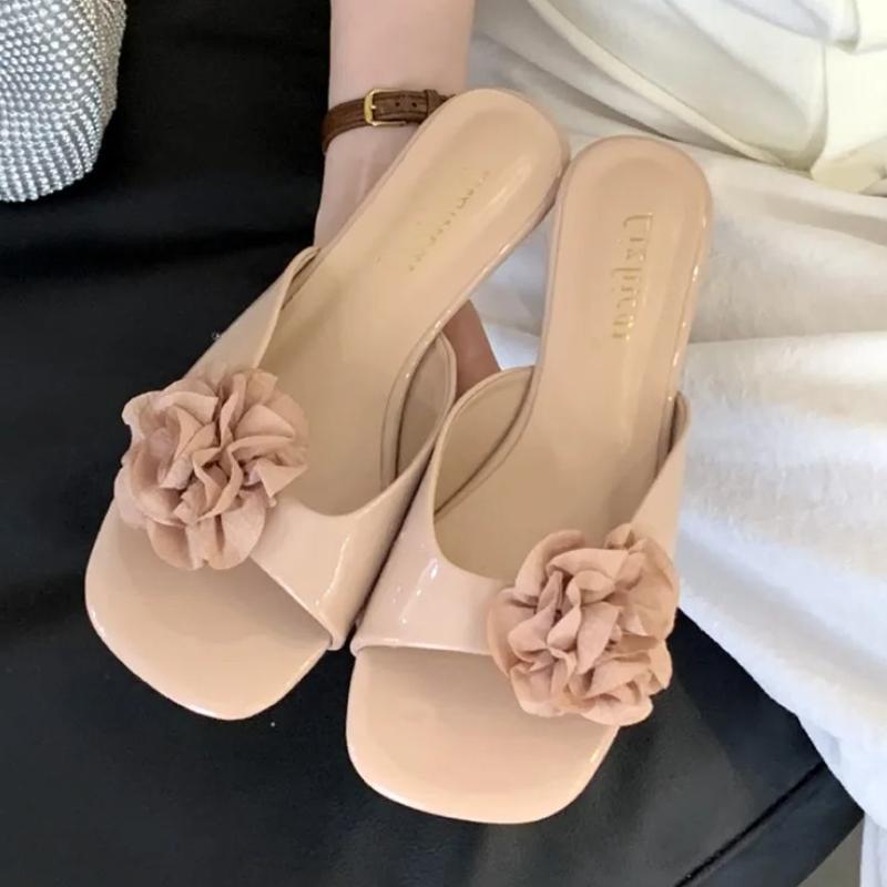 Summer Flower Design Flat Slippers Sandals Women Summer Sexy Open Toe Slide Sandal Elegant Open Heel Dress Pumps Sandalias Mujer