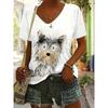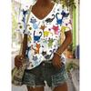 Trendy Summer Cartoon Animal Printing Casual Fashion Short Sleeve Street V-neck Women's OverSize Clothing