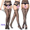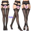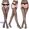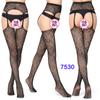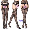 Women Black Stockings With Belt Set High Fishnet Tights Erotic Lingerie Sexy Pantyhose Floral Print Long Mesh Lace Stocking