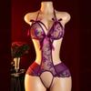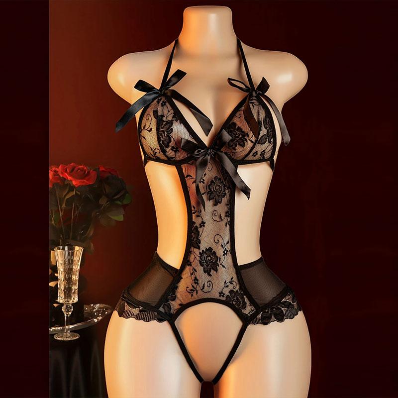Neck-hanging One-piece Bra Semi-See-through Lingerie Set Crotchless G-string Bodysuit Crotch Open Underwear Intimate Sexy Undies