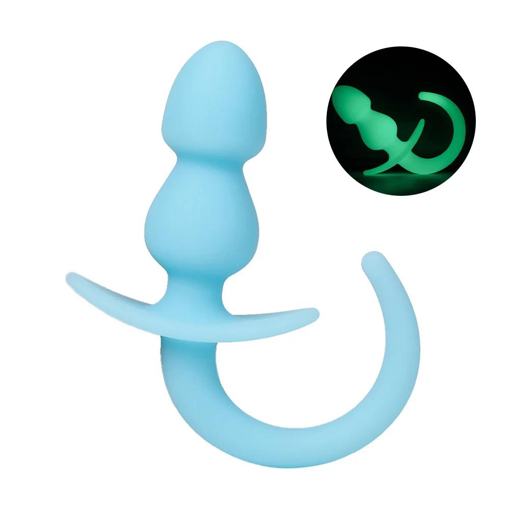 Anal Plug Luminous Dog Tail Anal Beads Soft Silicone Butt Plug Puppy Tails Anus Dilator Prostatic Massage Sex Toys for Woman Man