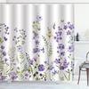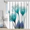Grey Floral Shower Curtain Watercolor Tulip Flower Shower Curtains For Bathroom Waterproof Polyester Fabric Bathroom Curtain