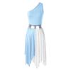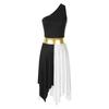 Womens One Shoulder Dance Dress Color Block Patchwork Design Asymmetrical Hem Sleeveless Performance Gown