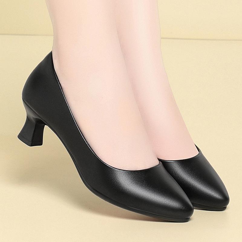 Stewardess Work Shoes Women's Black Leather Shoes Small Heel Professional Business Tooling Dress Medium Heel Interview Women's Shoes
