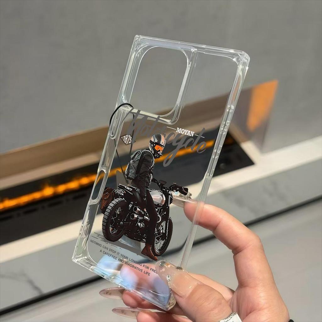 Transparent Square Back Tube Case Casing Protection For iPhone 12 11 16 ProMax 15 Plus 13 14 Pro Max Anti-Oxygen,Motorcycle Man Pattern