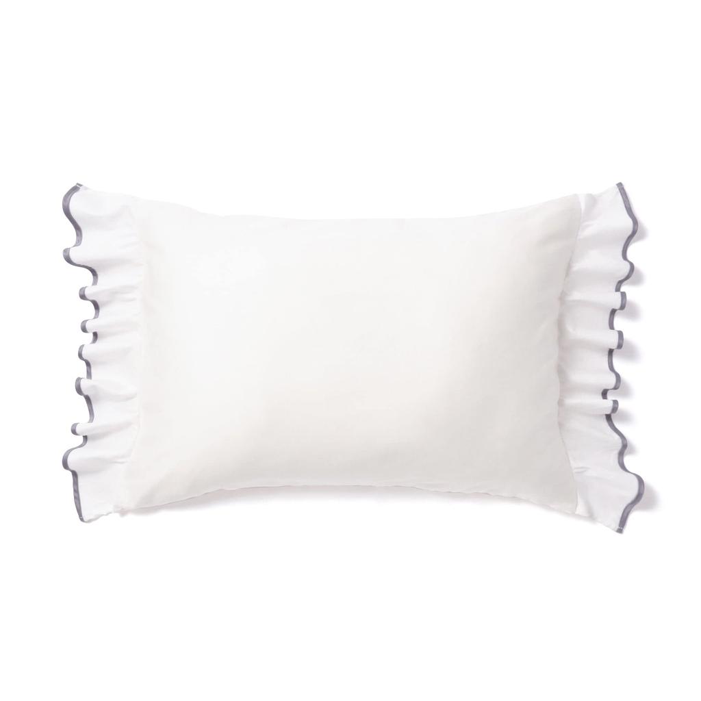 This pillowcase features generous voluminous ruffles. The piping around the edges of the ruffles adds a touch of elegance to the design. The main body is made of 100% cotton. Its soft texture supports a comfortable sleep. Pair it with the duvet cover from the same series for a sophisticated and dramatic bedside look. [Notes] Machine washable (gentle 40°C), dry cleanable, not tumble dryable, ironable (medium heat). Due to the nature of the material, prolonged exposure to direct sunlight or light may cause discoloration. Color may fade or transfer to other items. It may shrink slightly when washed in water. When washing, place in a laundry net and wash separately. Do not leave wet for long periods of time; dry immediately. Avoid tumble drying; reshape and dry in the shade. When bleaching, use liquid oxygen bleach. Use a detergent that does not contain fluorescent brighteners. Pilling and fuzzing may occur with use or washing. Country of Origin: China