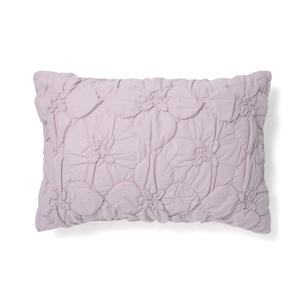 This pillowcase features a gorgeous, three-dimensional floral pattern created with quilted stitching. The solid color and textured design make it easy to coordinate with other items. We recommend pairing it with wooden furniture and lots of greenery for a natural, feminine look. [Notes] Machine washable (gentle temperature 30°C), dry cleanable (no tumble drying), ironable (high temperature). Due to the nature of the product, slight variations in size, color, and pattern may occur. Due to the nature of the material, discoloration may occur if exposed to direct sunlight or light for extended periods. Color may fade or transfer to other items. Take care to avoid friction, especially when wet. It will shrink when washed in water. When washing, wash separately in a laundry net. Do not leave it wet; dry immediately. Avoid tumble drying; reshape and dry in the shade. Washing may cause deformation. When bleaching, use liquid oxygen bleach. Use a detergent that does not contain fluorescent brighteners. The filling may come out during use or washing. Avoid ironing the surface.