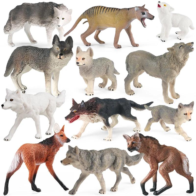 Feature:Oenux Wild Beast Animals Small Gray Wolf Simulation Baby Wolves Model Action Figures Collection Lifelike PVC Cake Toppers Toy